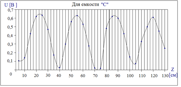 | "C" U (В) | 0,125 | 0,14 | 0,42 | 0,62 | 0,635 | 0,47 | 0,172 | 0,026 | 0,3 | 0,56 | 0,63 | 0,53 | 0,278 |