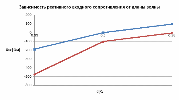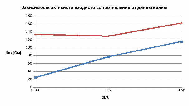Соответственно, из исследований видно, что чем больше длина вибратора, тем больше его активное входное сопротивление. Это заметно как в теоретической части, так и в экспериментальной.