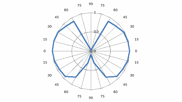 Экспериментально полученная диаграмма направленности несколько отличается от теоретической. Теоретическая ДН ровная, без искривлений, но форма её не круглая, а зауженная (эллипс), Это связано с тем, что эксперимент проводился с вибратором длиной 32 см, что равно половине длины волны. Причиной неравномерности реальной ДН стали конечное количество замеров и помехи, вызванные посредственной точностью установки приемника, помехами в коаксиальных кабелях, погрешностью вольтметра. Так же на форму ДН влияли посторенние объекты, находящиеся в лаборатории.