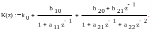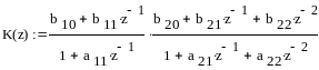 Передаточную функцию K(z) можно представить в виде произведения передаточных функций (обычно отдельные функции имеют порядок не выше второго):