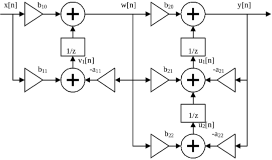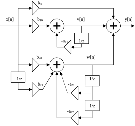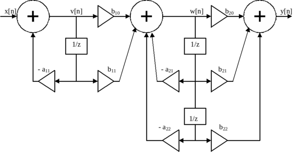 w[n] = b10 v[n]+ b11v[n-1] – a21w[n-1] – a22 w[n-2]