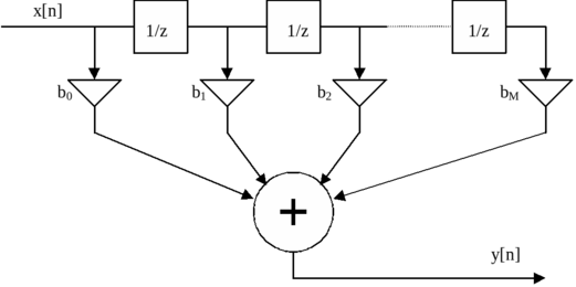 y[n]= b0x[n]+b1x[n-1]+b2x[n-2]+…+bMx[n-M].