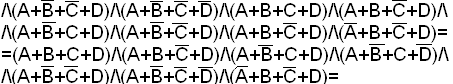 аналитическое выражение функции приводится с помощью соотношения AB+C=(A+C)(B+C) к конъюнктивной записи со скобками, причем в скобках должны стоять дизъюнкции отдельных переменных в прямой или инверсной форме;