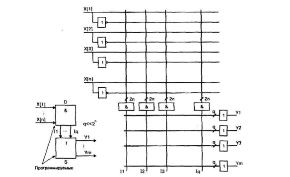 ( На рис.4.5. Структура БИС программируемой матричной логики)