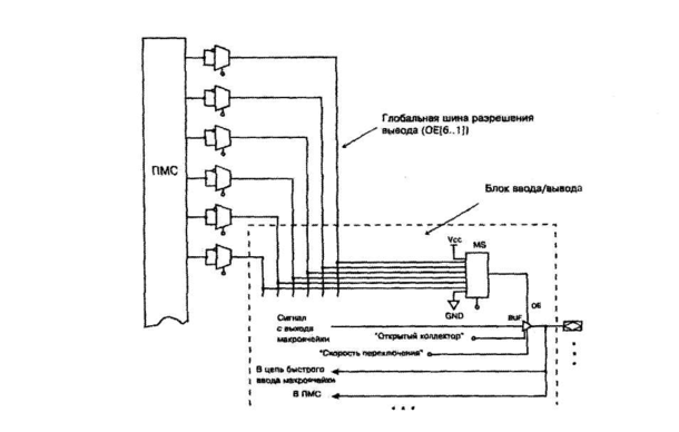 Блок ввода/вывода позволяет для каждого вывода СБИС задавать свой режим работы: вход; выход; выход с открытым коллектором (только для СБИС MAX 7000S); двунаправленный.