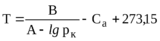 где рк = 2,000 кПа, А = 5,949, В = 812,648, Са = 247,55.