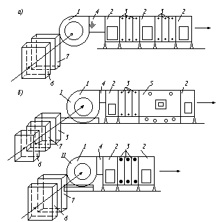 Типовые компоновки приточных кондиционеров в зависимости от их назначения приведены на рис. 5.