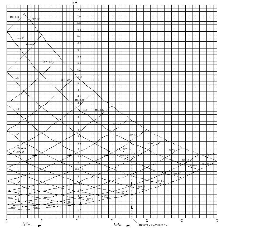 г) критерий R по диаграмме на рис. 14, предварительно определив разность tp – tвн (рис. 9), принимая tp = tри и tвн = t10;