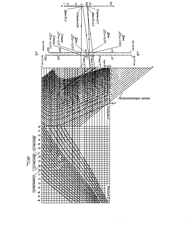 ж) по графику на рис. 10 при известных DТс = 0,768 и (1 + М3сRс) = 3,61 получают точку "а" на прямой 1. По табл. 1 определяют число теплообменников и конструктивные характеристики выбранной системы БСКВ, а именно: суммарное число рядов в первом теплообменнике z = 12. Принимают к установке четыре трехрядные секции.