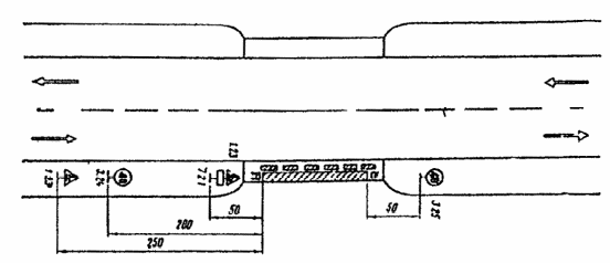 3.29. На двухполосных мостах с ездой понизу или когда ширина моста с ездой поверху недостаточна для организации двухстороннего движения и одновременного пропуска пешеходов по проезжей части, следует оборудовать пешеходные переходы по обе стороны моста (см. рис. 3.26). При высокой интенсивности пешеходного и автомобильного движения следует устраивать светофорное регулирование транспортных и пешеходных потоков или осуществлять управление движением с помощью регулировщиков.