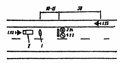 1 - автомобиль; 2 - зона работ 3 - ремонтируемое дорожное ограждение