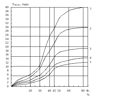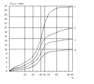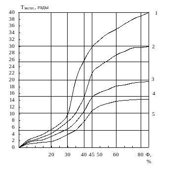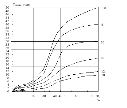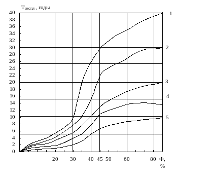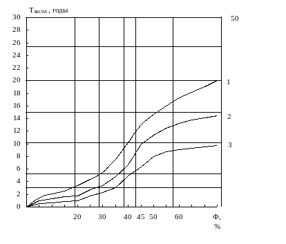 Фi – физический износ материала слоя, определяемое по рис. 1 и 2 в зависимости от срока эксплуатации данной слоистой конструкции, %;