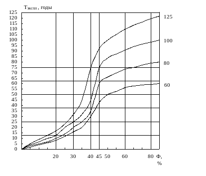 Рис. 1. Физический износ слоистых конструкций (срок службы 60–125 лет)