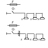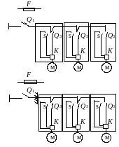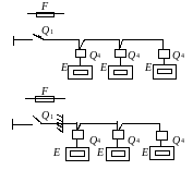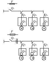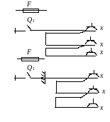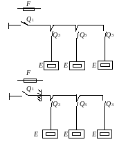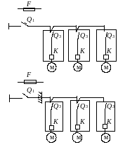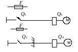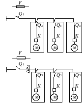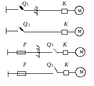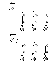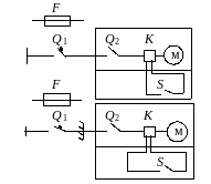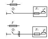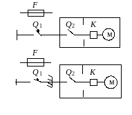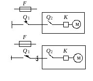| 1 | “К” не встроен в оборудование, поставляется комплектно с оборудованием; при наличии на распределительном пункте предохранителей устанавливается Q3; “К” должен комплектоваться заводом-изготовителем с аппаратом отключения в цепи управления |