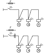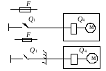 Q4 – коммутационный аппарат (пускатель, выключатель, рубильник и т. д.), может поставляться комплектно с оборудованием; - - – перегородка.