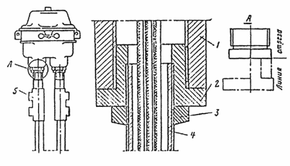 5 ¾ коробка разделительного уплотнения; А ¾ изготовление переходной футорки из нажимной гайки.