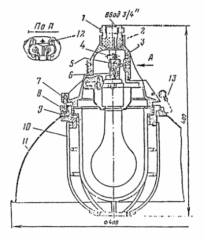 Рис. 84. Светильник Н4БН-150 с вертикальным вводом кабеля.