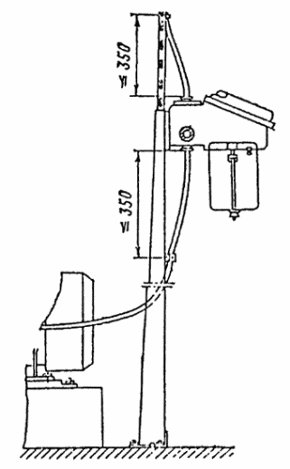 Отрезок кабеля от пускателя к двигателю крепится скобой к перфорированной рейке с закладными гайками, установленной между стойками, при этом расстояние от нажимной муфты пускателя до скобы закрепления должно быть не более 350 мм.