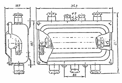 Рис. П4-1. Габаритные и установочные размеры коробки У409 по ТУ 36.1859-75.