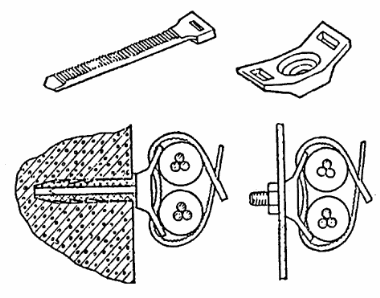 Рис. 18. Крепление кабелей на металлических полосах и лентах.