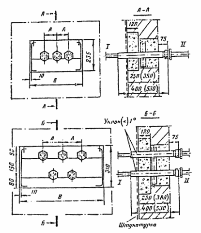 5-40. Проход группы кабелей (более 5 шт.) сквозь внутренние стены взрывоопасных зон рекомендуется выполнять в специальных стальных коробах, засыпаемых песком, по действующему типовому проекту. Примеры установки коробов приведены на рис. 13 — 15.