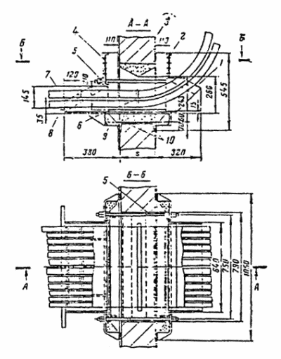 Рис 15. Короб для прохода кабелей при переходе с горизонтальной на вертикальную трассу сквозь внутренние стены взрывоопасных помещений. Обозначения см. в подписи к рис.13.
