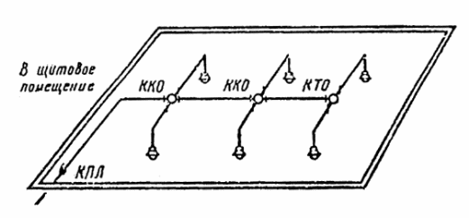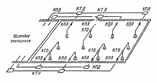 Рис. 27. Вариант выполнения разводки трубопроводов осветительной сети в помещении класса В-I.