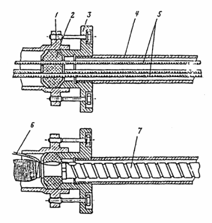 Рис. 31. Ввод трубы в электродвигатель (резиновое кольцо является разделительным уплотнением).