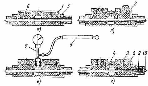6 ¾ уплотнительный состав УС65; 7 ¾ тройник с манометром и ниппелем; 8 ¾ насос;