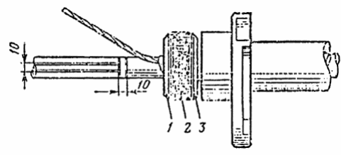 Надеть на многопроволочные жилы кабеля манжеты, а на заземляющий проводник трубку из поливинилхлоридного пластиката с диаметром, равным или несколько большим трубчатой части наконечника.