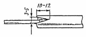 в) на одном конце трубок сделать косой срез длиной 12 мм (рис. 46), а на другом — клинообразные вырезы длиной 10 — 12 и шириной у конца трубок 3 — 5 мм (рис. 47);