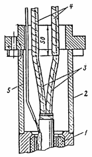 1 ¾ резиновое кольцо; 2 ¾ кабельная муфта; 3 ¾ жилы кабеля; 4 ¾ обмотка жил лакотканью и лентой ПВХ; 5 ¾ проводник заземления.