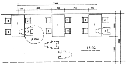 Рис. 3. Планировочная схема спальной комнаты на 3 места (вариант 1). Экспликацию оборудования см. рис. 1
