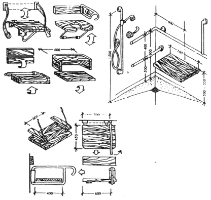 Рис. 14. Типы стационарных сидений в душевых. Зарубежный опыт (Х. Ю. Калмет)
