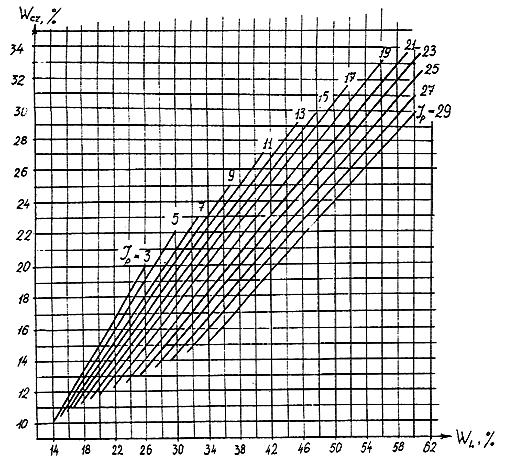 2.8. Глинистые грунты являются пучинистыми, если их расчетная предзимняя влажность W в пределах слоя сезонного промерзания превышает следующие уровни: