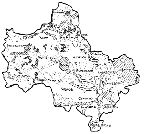 Рис. 1. Схематическая карта грунтовых условий Московской области.
