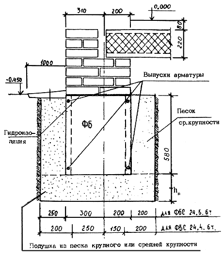 >0,05) зданий с мелкозаглубленными столбчатыми фундаментами следует применять фундаментные балки длиной 2400, 2700, 3300, 4000 и 4500 мм, содержащие выпуски арматуры (серия 1.100.1-1п, вып. 2).