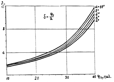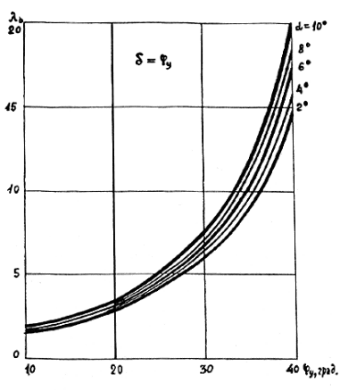 для глинистых грунтов в зависимости от угла внутреннего трения грунта