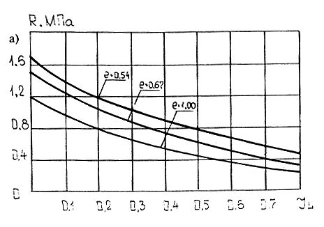 Рис 1. Значения расчетного сопротивления R под подошвой фундаментов на уплотненном основании, погруженных на глубину 1,2 м в грунт: