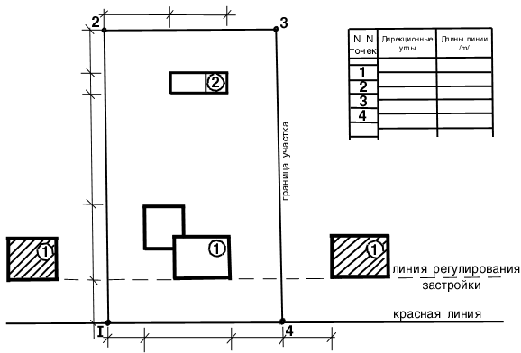 Схема выноса в натуру границ земельного участка и разбивка строений прилагаются.
