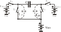 Простейший переключаемый конденсатор (ПК) изображён на рис. 3-1. При Т1=1 – ПК заряжается до VDC1, на обкладках появляется заряд |Q1|=C*VDC1. При Т2=1 – заряд на обкладках |Q2|=C*VDC2. Разность зарядов Q1-Q2=C(VDC1-VDC2)=