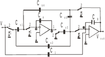 Предположим, что резисторы имитируются переключаемым конденсатором (ПК) с частотой переключения Fs, много большей наивысшей частоты сигнала, поступаемого на вход фильтра. Тогда REFF =1/Cs*Fs. Здесь REFF – номинал эквивалентного резистора; СS – переключаемый конденсатор; FS – частота переключения. Заменим каждый резистор на ПК, причем любой резистор с именем Ri заменим на ПК с именем СSi.