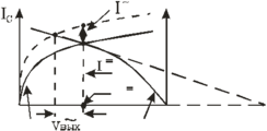 ис. 1.5. ВАХ идеального (пунктир) и реального (сплошная линия) МОП транзисторов.