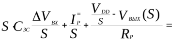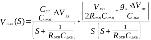 Ввиду постоянства параметров компонентов при изменении VВХ, уравнение, описывающее эту схему, является линейным, поэтому для описания схемы используется преобразование Лапласа. Поскольку нас интересует передаточная функция системы как реакция на малый синусоидальный входной сигнал, используем преобразование Фурье как частный случай преобразования Лапласа: