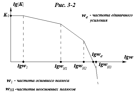 Очевидно, что чтобы неосновные полюса системы с ЛАЧХ, подобной показанной на рис. 3-3, вносили меньший вклад в сдвиг фазы, необходимо иметь возможно более высокими частоты