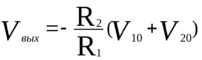 в непрерывной схеме инвертирующего аналогового сумматора;