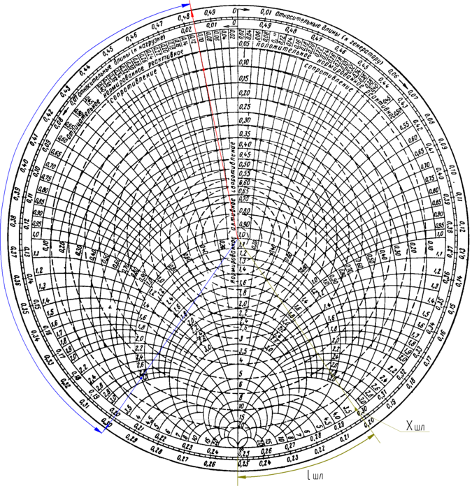 Далее из получившейся линии посчитаем место включения согласующего шлейфа