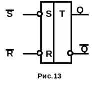 поэтому такой триггер называется триггером с инверсным управлением (рис.12). Условное графическое обозначение (УГО) такого триггера представлено на рис.13.
