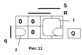 Для синтеза RS-триггера представим его логическую функцию, пользуясь картой Карно (рис. 11);