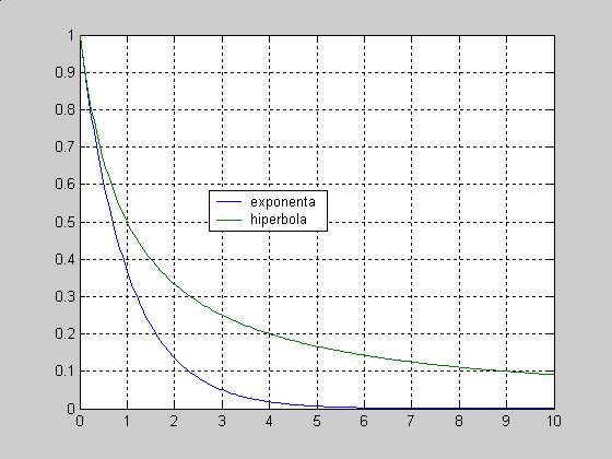 >> plot(t,exp(-t),t,1./(t+1)),grid